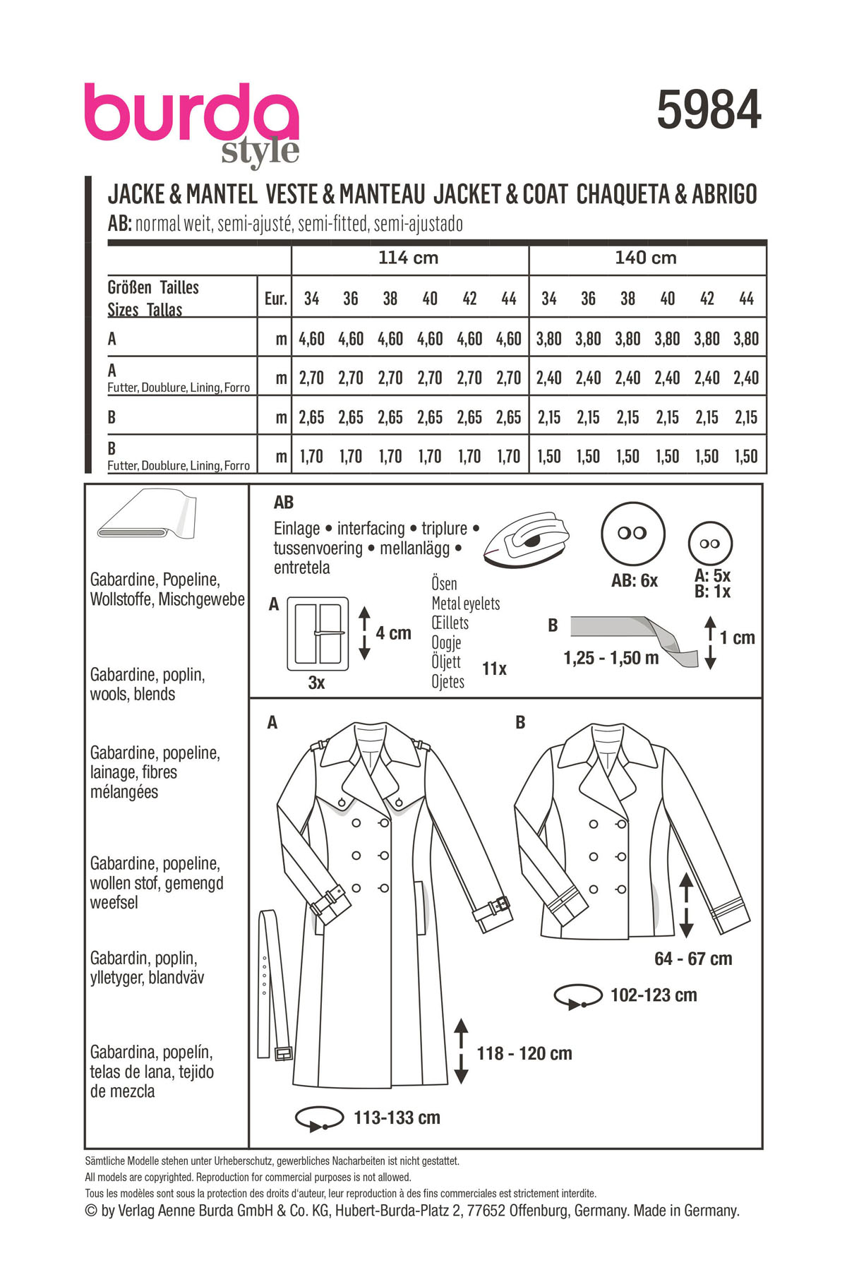 Schnittmuster Jacke Trenchcoat Burda 5984 Maschinensticken Nahen Schnittmuster Silkes Naehshop De